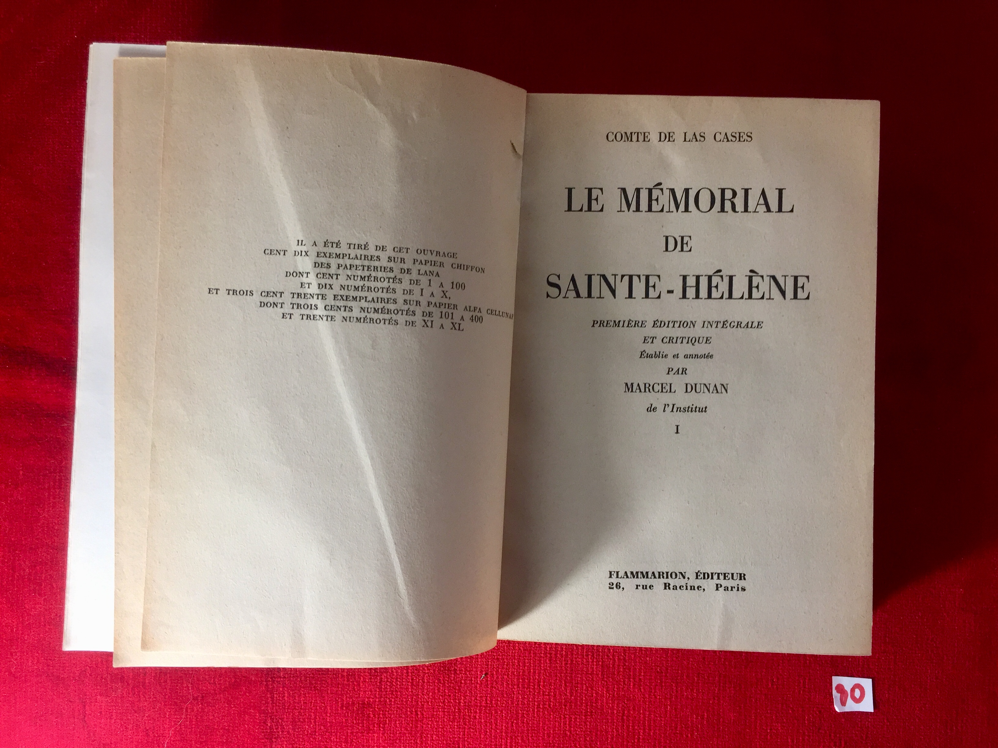 Le Mémorial de Ste Hélène 1, 2 et "Les livres de Longwood et Récapitulation". 1951.(Lot de 4 Tomes).