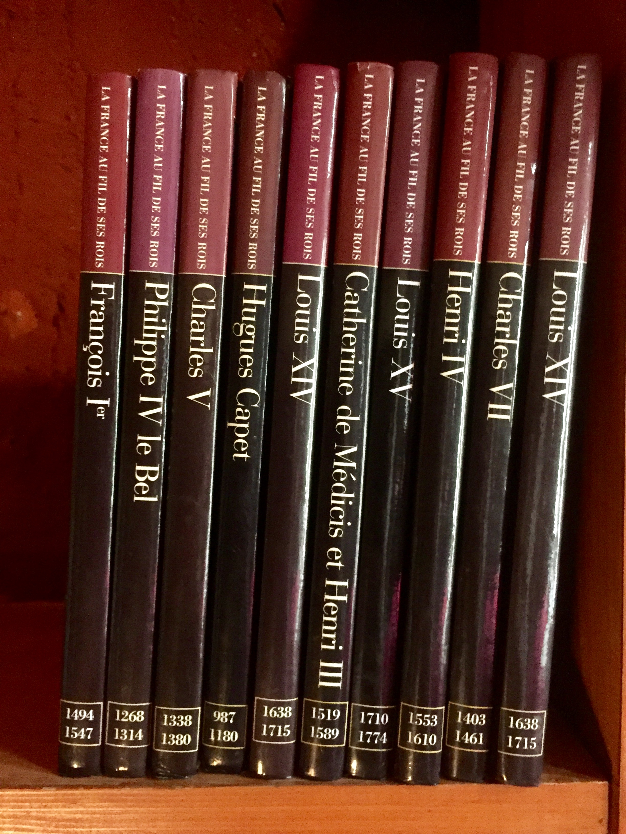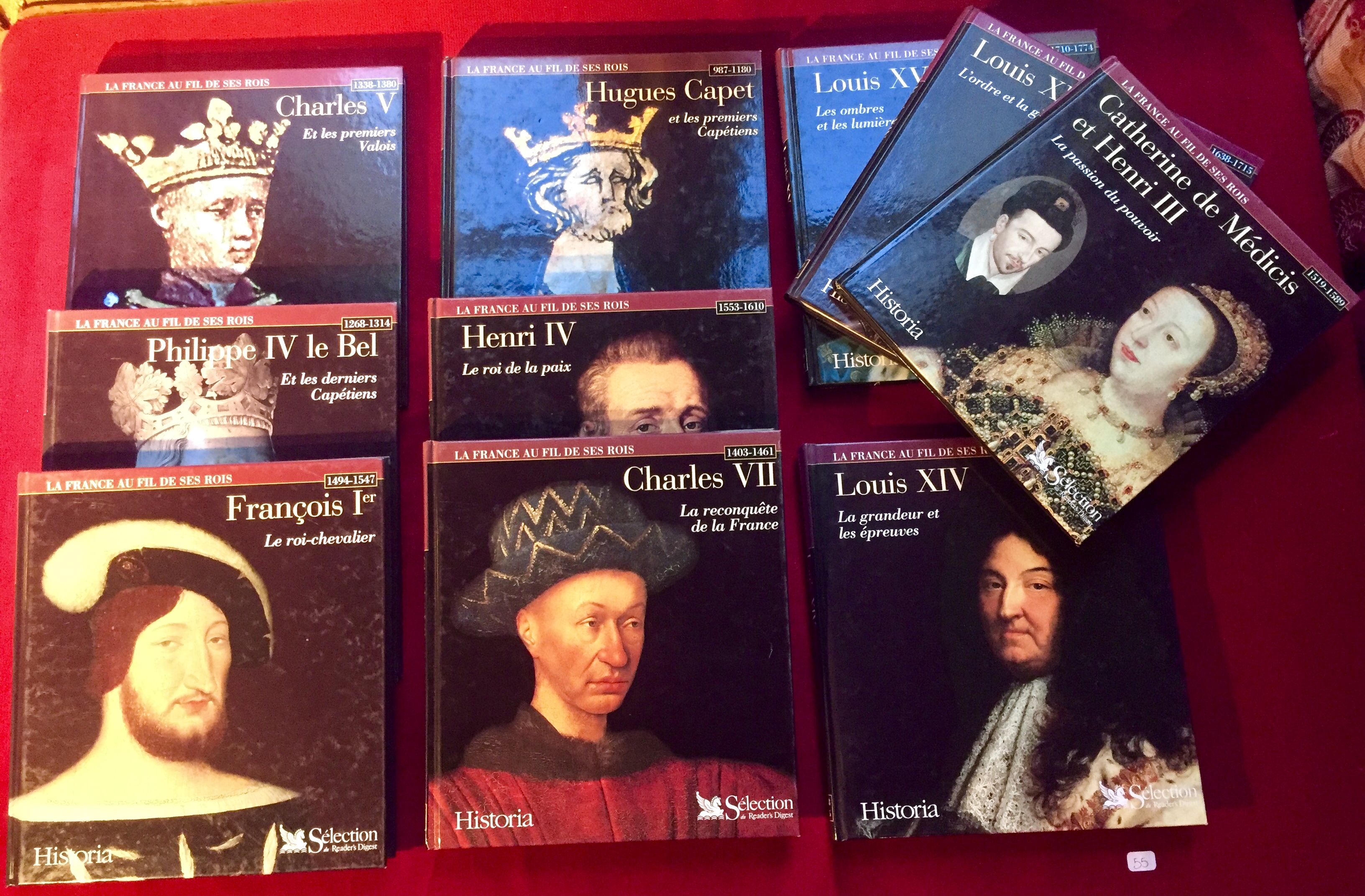 La France Au Fil De ses Rois. Lot de 10 volumes. Descriptif : Louis XVIII : La grandeur et les épreuves, Henri IV: Le roi de la Paix, Louis XIV: l’ordre et la gloire, Catherine de Médicis et Henri III : La passion du pouvoir, Charles VII : La reconquête de la France
