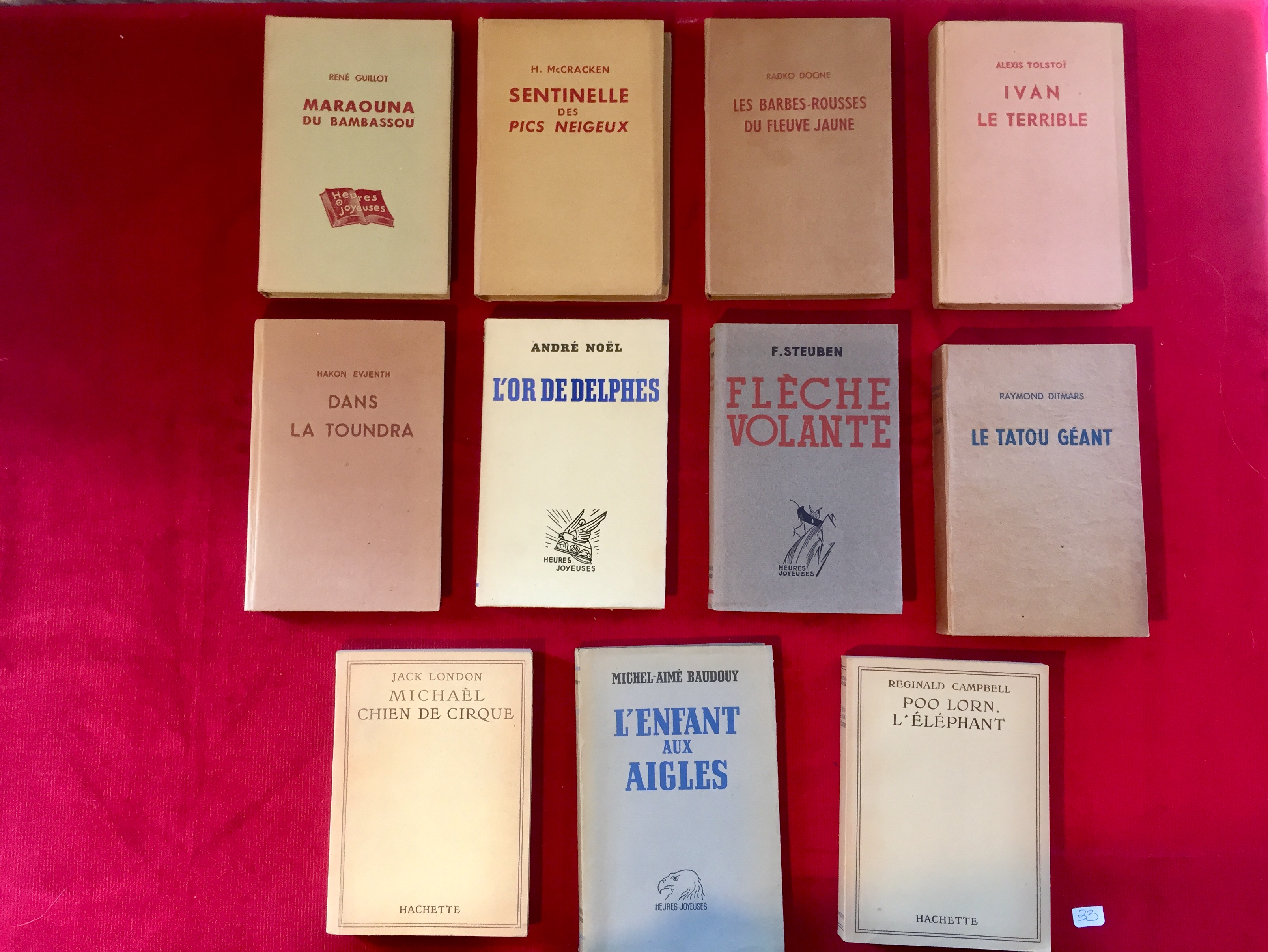 -Les Sentiment exceptionnels, Maurice Rostand.-Les Barbes-Rousse, Radko Doone.-Maraouna,Rene Guillot.-Sentinelle des Pics Neigeux,H.McCracken.-Le Tresor de OPeter Duck,Arthur Randsome.-Fleche Volante, F.Steuben.-Le Tatou géant, Raymond Ditmars.-Poo Lorn, L'Elephant, Reginald Campbell. -L'Eléphant aux Aigles, Michel-aime Baudouy.-Ivan Le Terrible, Alexis Tolstoi.-Dans la Toundra, Hakon Evjenth.