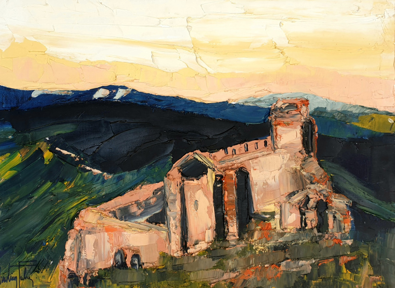 Peinture à l'huile Christian Fabre Château de Peyrepertuse dans L'Aude